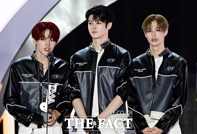[더팩트ㅣ마카오=임영무 기자] <더팩트>가 주최하고 팬앤스타와 더스퀘어이엔엠이 주관하는 '2025 더팩트 뮤직 어워즈(THE FACT MUSIC AWARDS, TMA)'가 20일 오후 '마카오 아웃도어 퍼포먼스 베뉴'에서 열린 가운데 핫티스트를 수상한 클로즈 유어 아이즈의 멤버들이 소감을 밝히고 있다.
