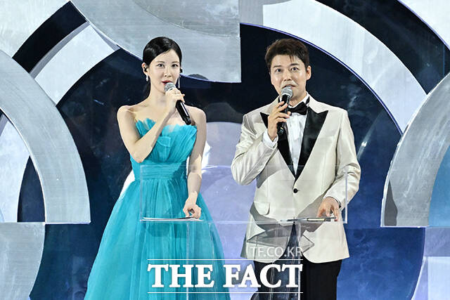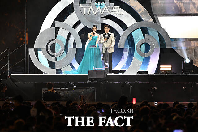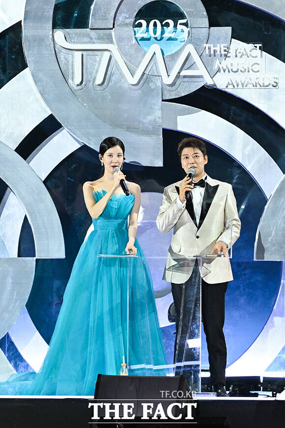 <더팩트>가 주최하고 팬앤스타와 더스퀘어이엔엠이 주관하는 2025 더팩트 뮤직 어워즈(THE FACT MUSIC AWARDS, TMA)가 20일 오후 마카오 아웃도어 퍼포먼스 베뉴에서 열린 가운데 소녀시대 서현(왼쪽)과 방송인 전현무가 진행을 하고 있다. /마카오=서예원 기자