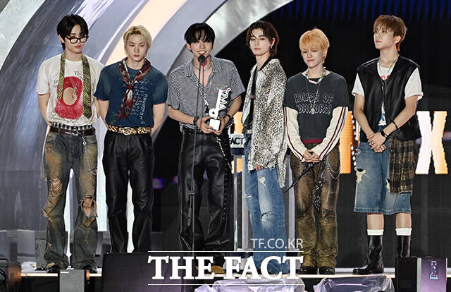 [더팩트ㅣ마카오=임영무 기자] <더팩트>가 주최하고 팬앤스타와 더스퀘어이엔엠이 주관하는 '2025 더팩트 뮤직 어워즈(THE FACT MUSIC AWARDS, TMA)'가 20일 오후 '마카오 아웃도어 퍼포먼스 베뉴'에서 열린 가운데 그룹 보이넥스트도어가 월드 베스트 퍼포머를 수상한 뒤 소감을 밝히고 있다.