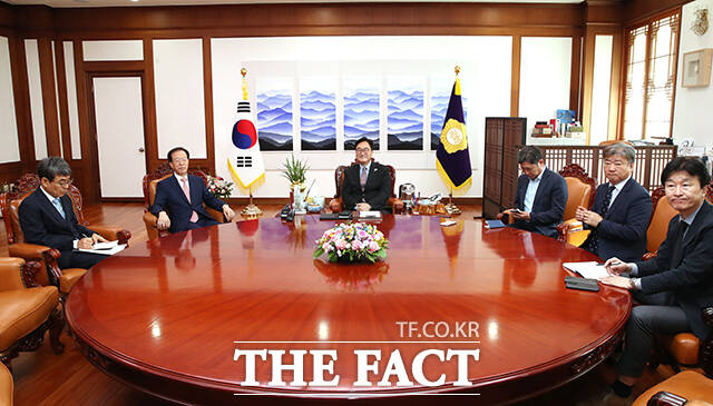 이석연 위원장은 이날 취임후 처음으로 우원식 국회의장을 찾아 협력체계 구축을 위해 환담을 가졌다.