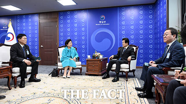 [더팩트ㅣ임영무 기자] 정동영 통일부 장관이 22일 오후 서울 종로구 정부서울청사에서 현정은 현대그룹 회장과 면담을 갖고 있다.
