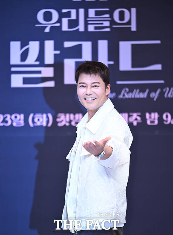 [더팩트ㅣ박헌우 기자] 방송인 전현무가 23일 오전 서울 양천구 목동 SBS에서 열린 SBS 새 예능 프로그램 '우리들의 발라드' 제작발표회에 참석해 포즈를 취하고 있다.