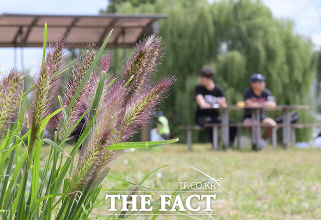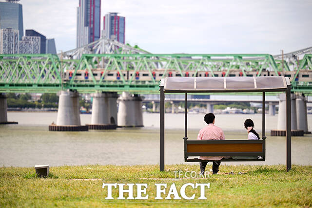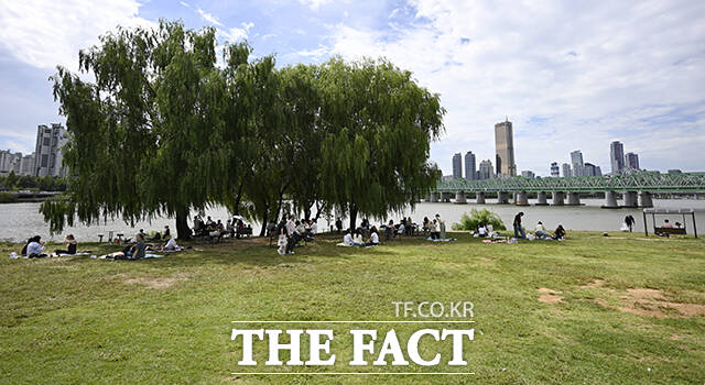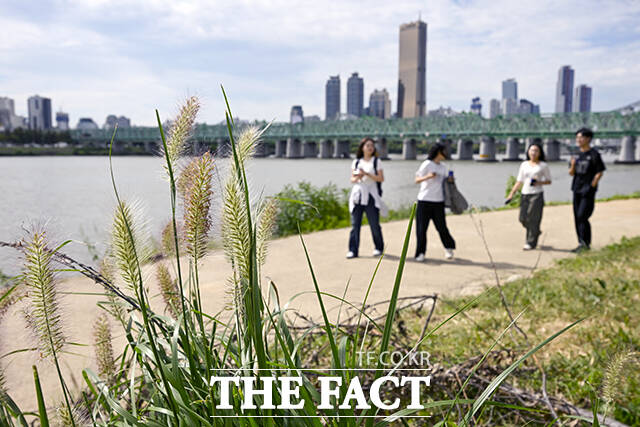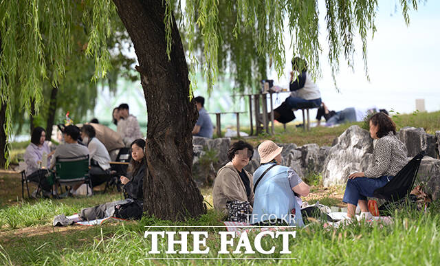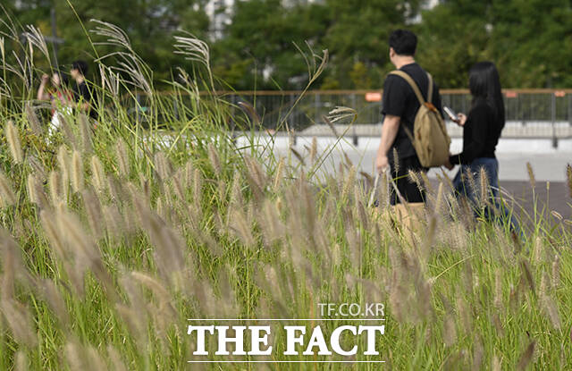 [더팩트ㅣ장윤석 기자] 절기상 추분인 23일 오후 서울 용산구 노들섬 공원에 물든 단풍 아래로 시민들이 산책하고 있다.