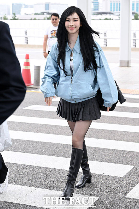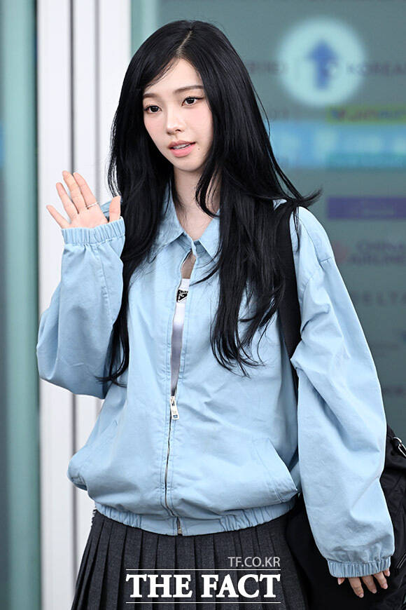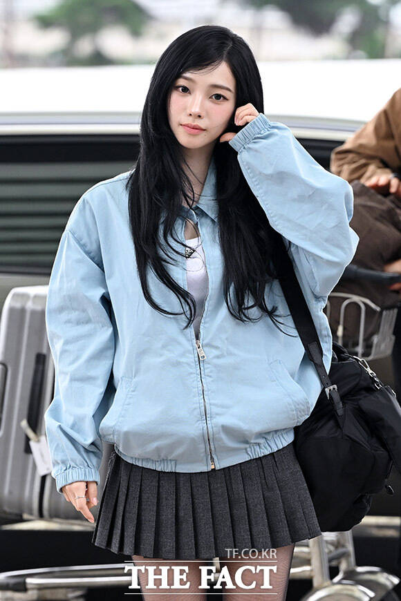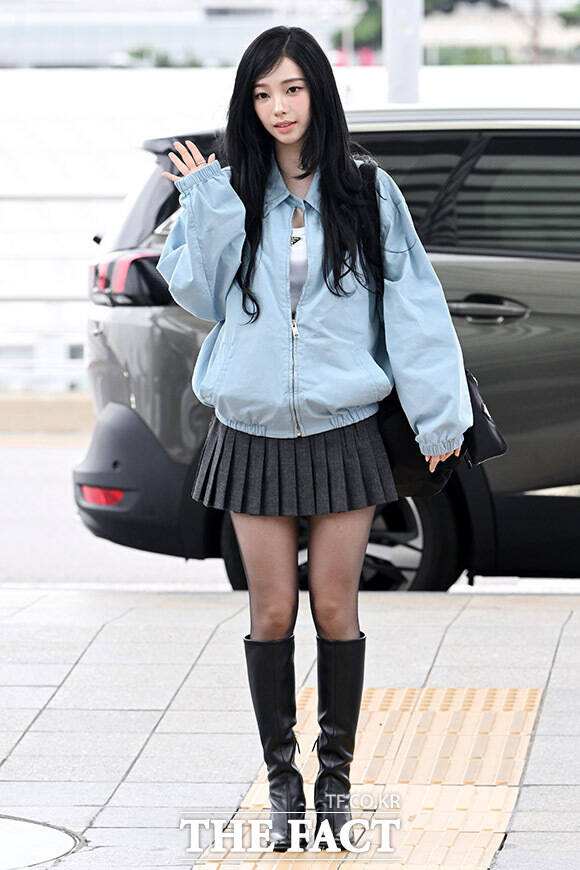 [더팩트ㅣ인천국제공항=남용희 기자] 그룹 에스파 카리나가 24일 오전 해외 일정 참석 차 인천국제공항을 통해 이탈리아로 출국하며 포즈를 취하고 있다.