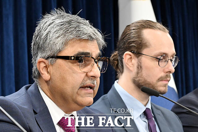 [더팩트ㅣ임영무 기자] 라훌 아난드 IMF 한국미션단장이 24일 오전 서울 종로구 정부서울청사에서 연례협의 결과를 발표하고 있다.darkroom@tf.co.kr사진영상기획부 photo@tf.co.kr