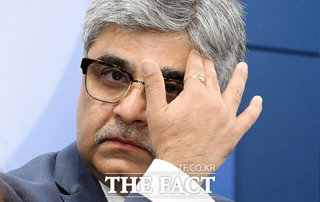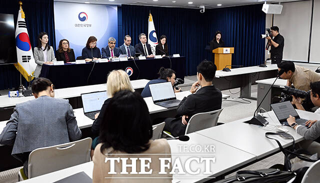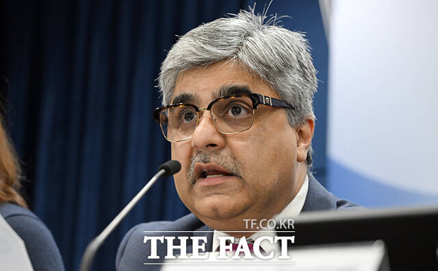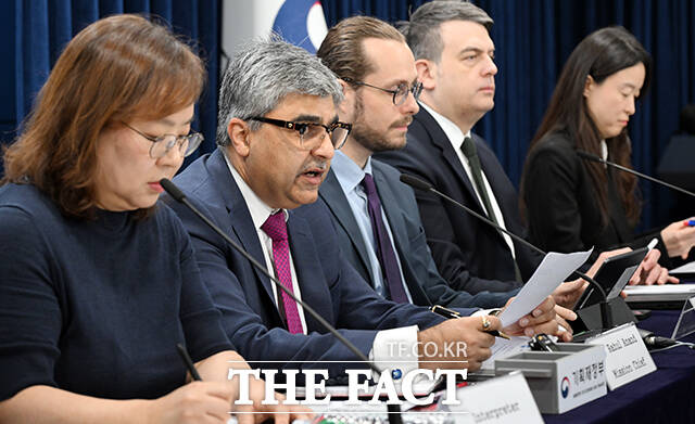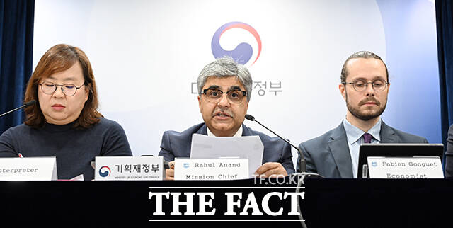 [더팩트ㅣ임영무 기자] 라훌 아난드 IMF 한국미션단장이 24일 오전 서울 종로구 정부서울청사에서 연례협의 개최결과를 발표하고 있다.