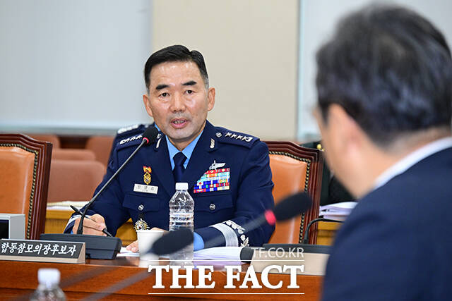 [더팩트ㅣ국회=남윤호 기자] 진영승 합동참모의장 후보자가 24일 서울 여의도 국회 국방위원회에서 열린 인사청문회에 출석해 질의 답변을 하고 있다.