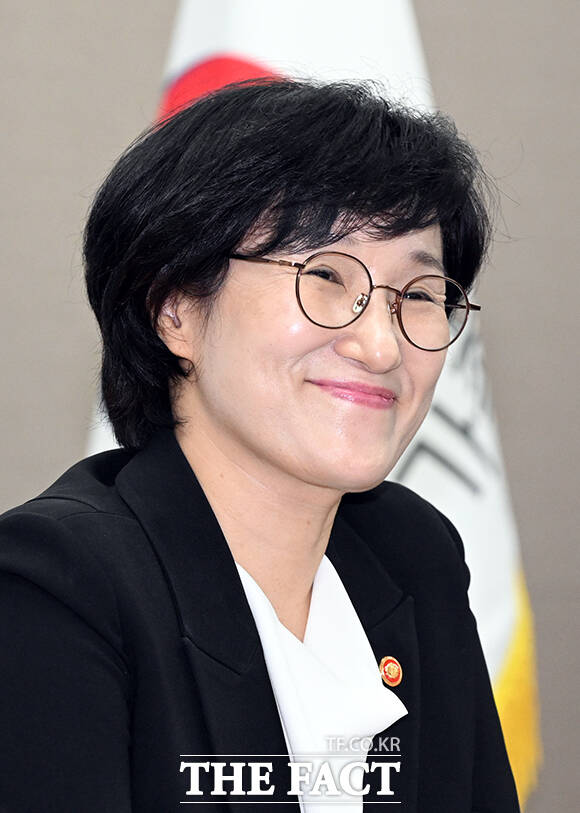 [더팩트ㅣ임영무 기자] 원민경 여성가족부 장관이 24일 오후 서울 종로구 정부서울청사에서 '스토킹·교제폭력' 관련 대책회의에 참석해 회의 시작전 미소를 짓고 있다.
