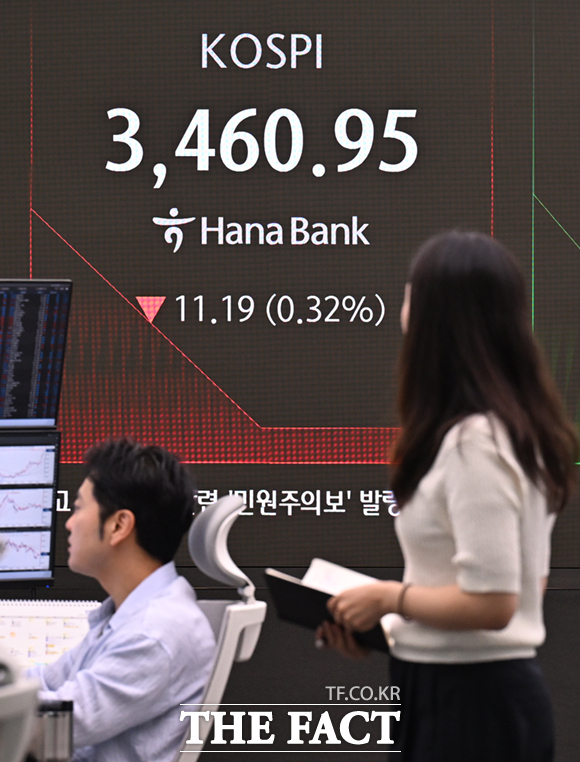 전날 코스피는 개장 직후 3497.95까지 치솟으며 장중 최고치를 새로 썼으나, 외국인 매도세에 사흘 만에 하락 마감했다.