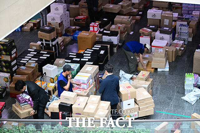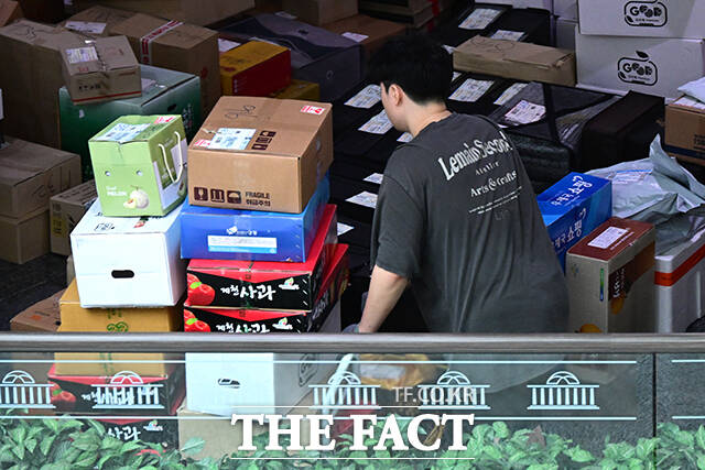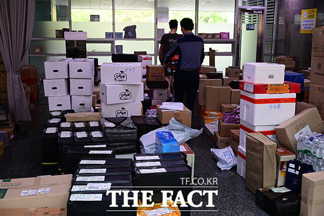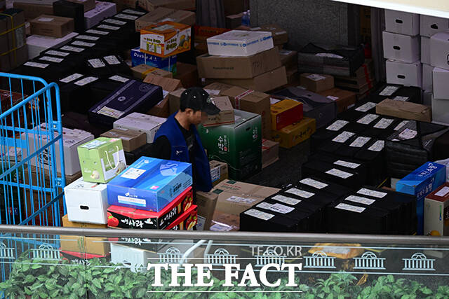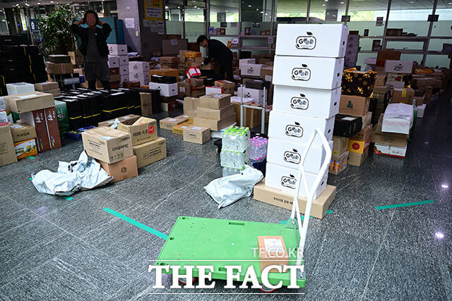 [더팩트ㅣ국회=남윤호 기자] 대명절 추석 연휴를 일주일여 앞둔 25일 오전 서울 여의도 국회 의원회관에 택배 물품이 쌓이고 있다.