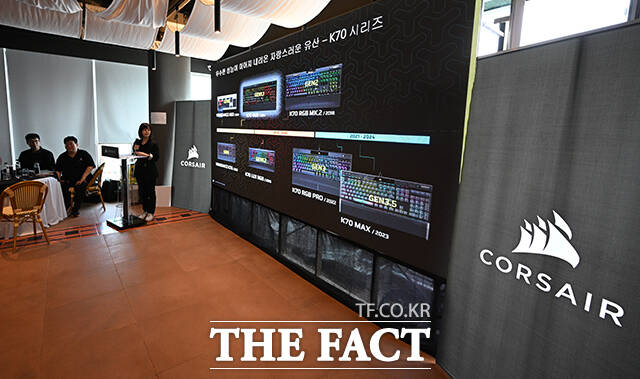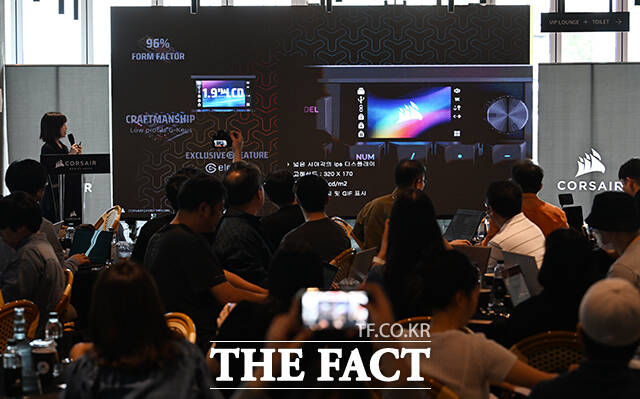 [더팩트ㅣ박헌우 기자] 게이머와 크리에이터, PC 빌더를 위한 고성능 PC 부품 기업인 커세어가 25일 오전 서울 서초구 리버서울 선상레스토랑에서 미디어데이를 열고 새로운 프로 게이밍 제품을 소개하고 있다.