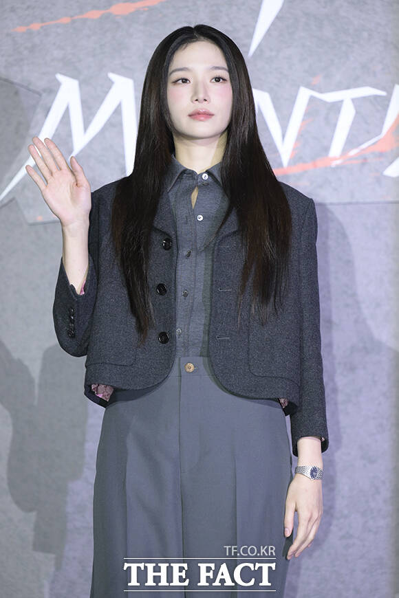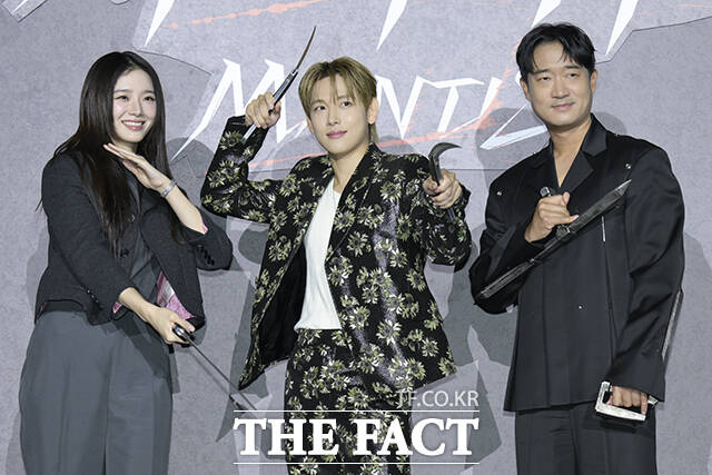 [더팩트ㅣ장윤석 기자] 배우 박규영과 임시완, 조우진이 25일 오후 서울 광진구 롯데시네마 건대입구점에서 열린 넷플릭스 영화 '사마귀' 제작보고회에 참석해 포즈를 취하고 있다.