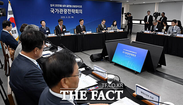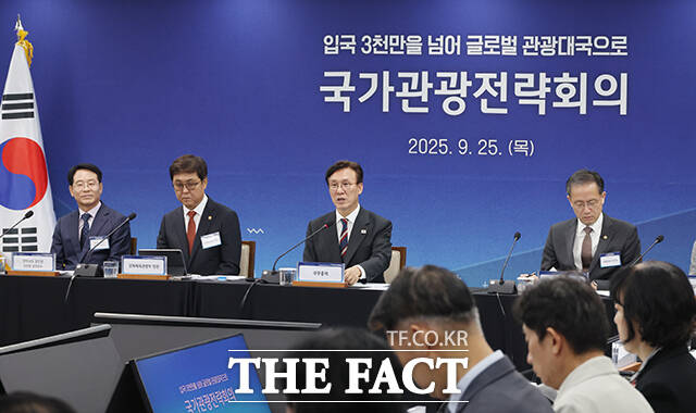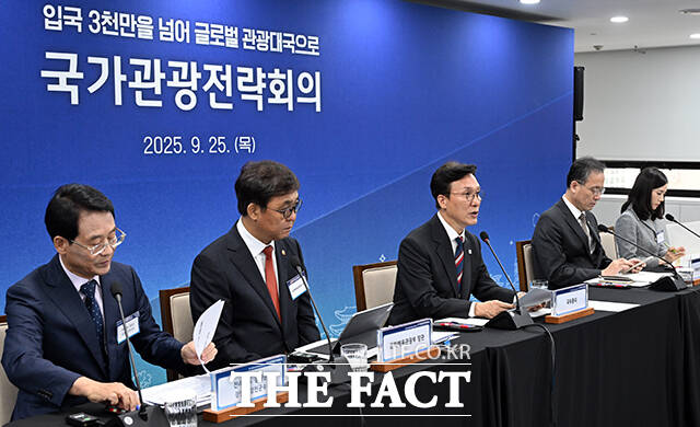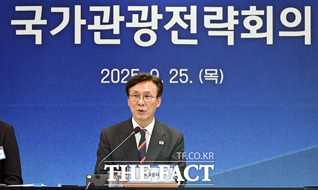 [더팩트ㅣ임영무 기자] 김민석 국무총리가 25일 오후 서울 중구 한국관광공사 서울센터에서 열린 제10차 국가관광전략회의에 참석해 모두발언을 하고 있다.