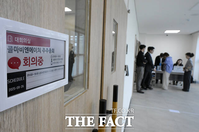 [더팩트ㅣ세종=장윤석 기자] 콜마비앤에이치 임시주주총회가 26일 오전 세종시 세종테크노파크에서 열린 가운데 주주들이 총회 시작을 기다리고 있다.