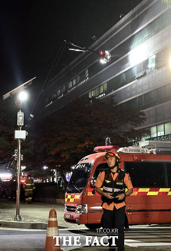 [더팩트ㅣ이효균 기자] 대전 유성구 국가정보자원관리원 화재의 큰 불이 잡혔다. 대전소방본부에 따르면 화재가 시작되고 10시간여 만인 27일 오전 6시 반쯤 큰 불길을 잡고 내부 온도를 낮추기 위한 배연 작업을 진행 중이다.