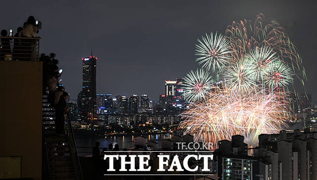 '눈앞에서 팡!'...불꽃 쏟아지는 밤하늘 아래 시민들 [TF사진관]