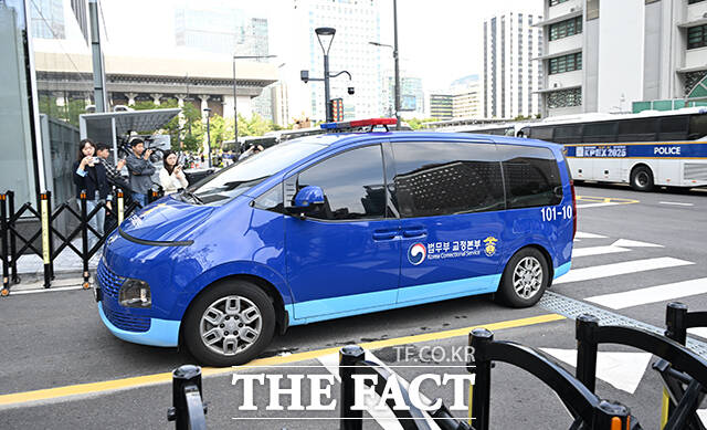 [더팩트ㅣ박헌우 기자] '건진법사·통일교 청탁 의혹'을 받는 한학자 세계평화통일가정연합(통일교) 총재가 29일 오전 서울 종로구 KT광화문빌딩 웨스트에 마련된 민중기 특검 사무실에 호송차를 타고 출석하고 있다.