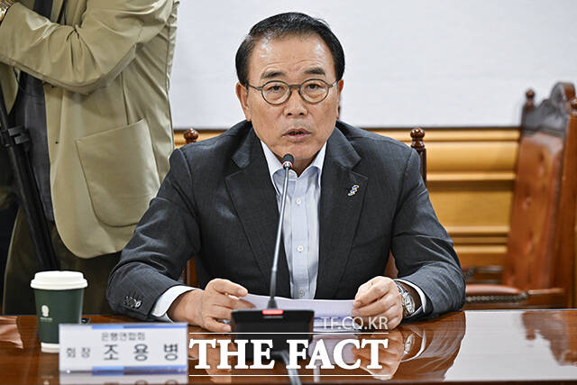 [더팩트ㅣ임영무 기자] 조용병 은행연합회장이 29일 오후 서울 중구 은행회관에서 열린 금융위원장과의 간담회에 참석해 발언을 하고 있다.