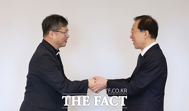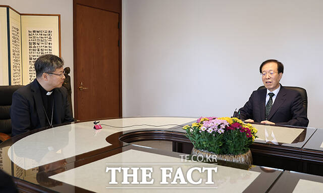 이에 정 대주교는 "다름과 차이를 인정하자는 위원장님의 취임사에 공감한다"면서 "전임 교황이 말씀하신대로 정치는 가장 고귀한 형태의 사랑이며, 공동선을 지향하는 사랑의 실천은 곧 사람의 목소리를 듣는 것"이라고 화답했다.