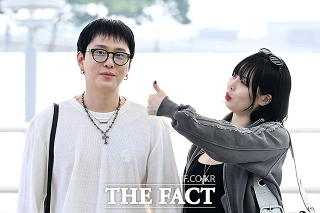 [더팩트ㅣ인천국제공항=남용희 기자] 가수 현아(오른쪽)와 용준형 부부가 30일 오후 해외 일정 참석 차 인천국제공항을 통해 싱가포르로 출국하며 포즈를 취하고 있다.