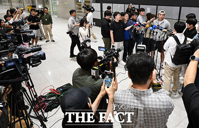[더팩트ㅣ인천국제공항=남용희 기자] '바람의 손자' 이정후가 미국프로야구 메이저리그(MLB) 2025 시즌을 마치고 30일 오후 인천국제공항을 통해 귀국해 취재진의 질문에 답하고 있다.