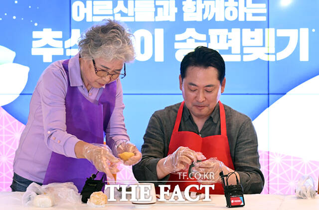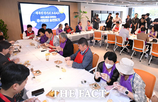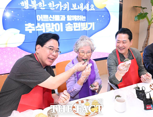 장 대표는 "우리 조상들은 나라가 더욱 발전하고 융성해지기를 바라는 마음으로 예전부터 반달 모양으로 송편을 빚었다"며 "오늘이 마침 노인의날인데 저희들이 송편을 빚어 어르신들을 대접할 생각을 하니 마음이 따듯해진다"고 말했다.