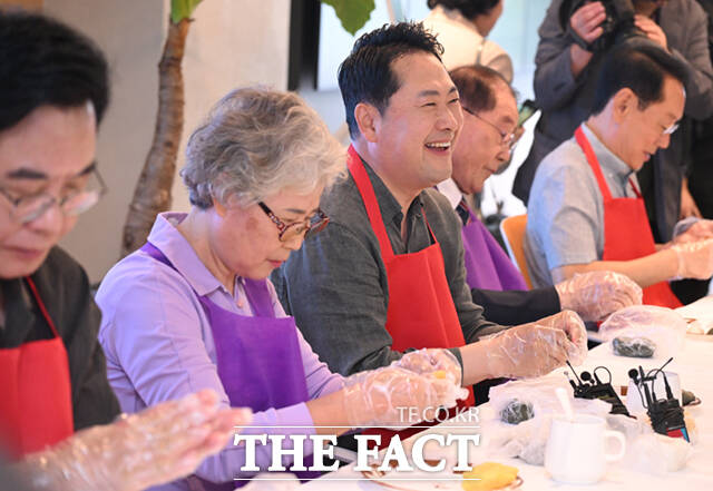 장동혁 대표를 비롯한 당 지도부는 이날 노인의날을 맞아 노인들과 직접 만나 송편 빚기 봉사활동을 했다.