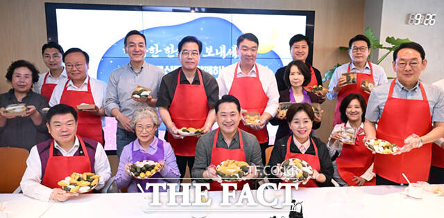 [더팩트ㅣ이새롬 기자] 장동혁 국민의힘 대표(오른쪽)와 송언석 원내대표가 추석 연휴를 하루 앞둔 2일 서울 동대문구 전농로 동백꽃노인종합복지관을 찾아 어르신들과 송편을 빚으며 자신이 만든 송편을 들어보이고 있다.
