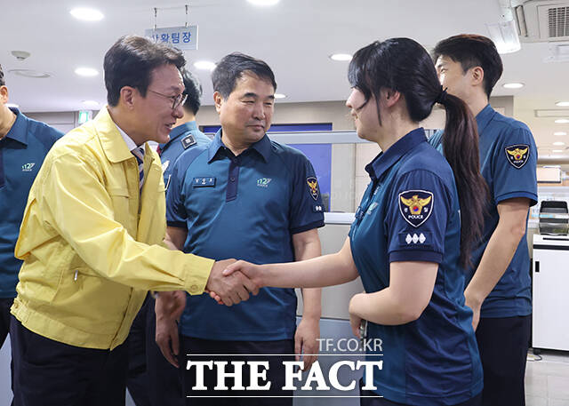 김민석 국무총리, 112 종합상황실 찾아 근무자 격려 [TF사진관]