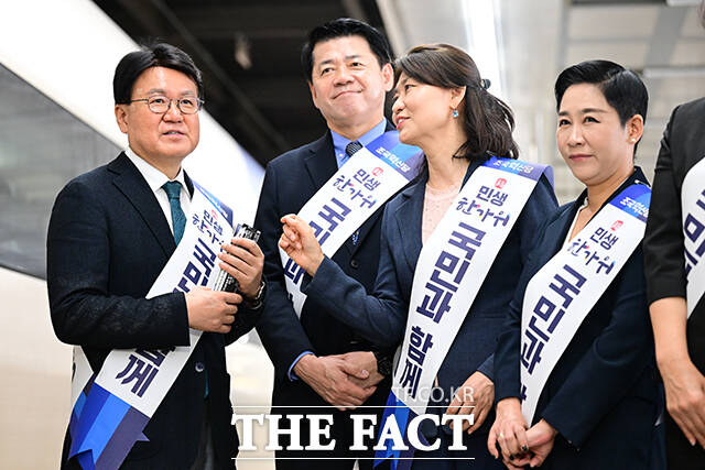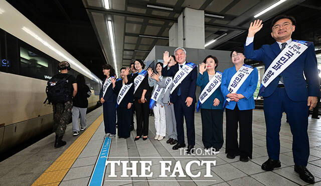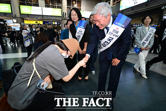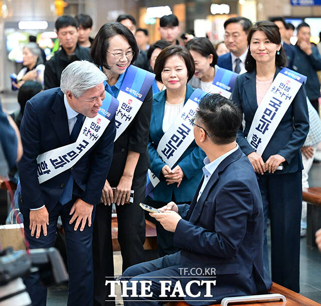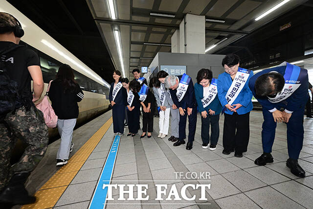 [더팩트ㅣ남윤호 기자] 서왕진 조국혁신당 원내대표를 비롯한 소속 의원들이 추석 연휴를 하루 앞둔 2일 오전 서울 용산역에서 귀성인사를 하고 있다.
