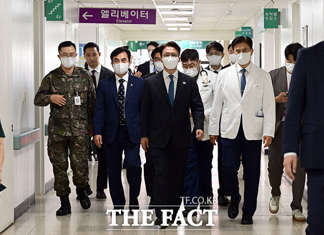 [더팩트ㅣ성남=임영무 기자] 김민석 국무총리가 4일 오후 경기 성남 분당구 국군수도병원을 방문해 입원장병을 위문하고 있다.