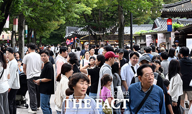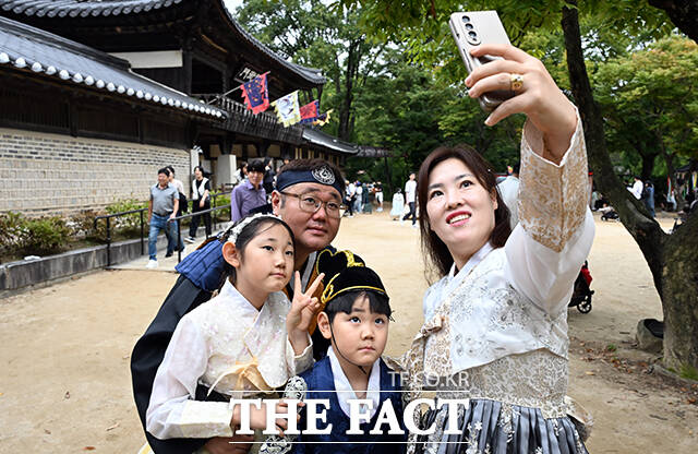 [더팩트ㅣ용인=임영무 기자] 추석 연휴 이틀째인 4일 오후 경기 용인 기흥 한국민속촌을 찾은 관람객들이 전통놀이를 즐기며 즐거운 시간을 보내고 있다.