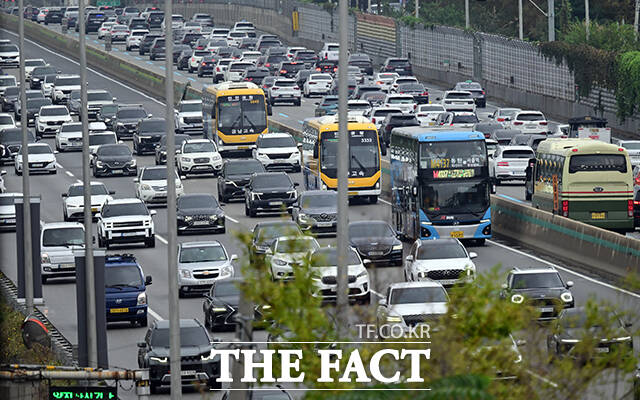 [더팩트ㅣ용인=임영무 기자] 추석 명절을 하루 앞둔 5일 오후 경기도 용인 기흥 경부고속도로 양방향에 차량이 늘어나고 있다.
