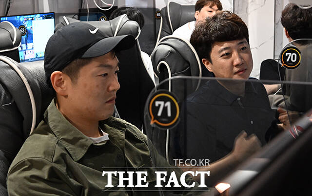 [더팩트ㅣ임영무 기자] 이준석 개혁신당 대표와 김재섭 국민의힘 의원이 추석 명절을 하루 앞둔 5일 오후 서울 영등포구의 한 PC방에서 열린 한가위 기념 스타크래프트 게임대회 '스타 정치인'에 참가해 대결을 펼치고 있다.