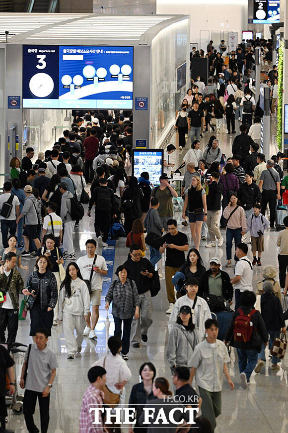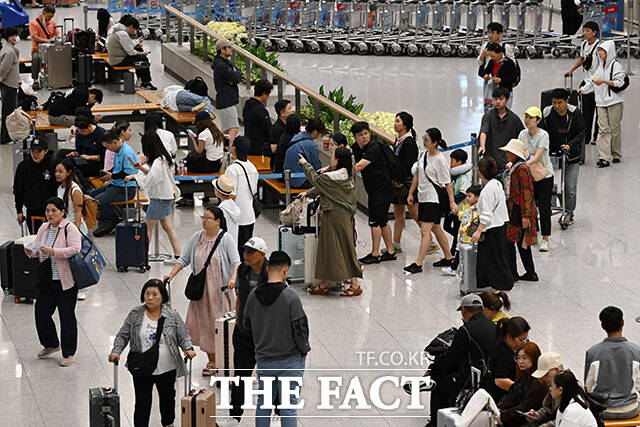'입·출국장 모두 북적북적' 추석 황금연휴, 붐비는 인천공항 [TF사진관]