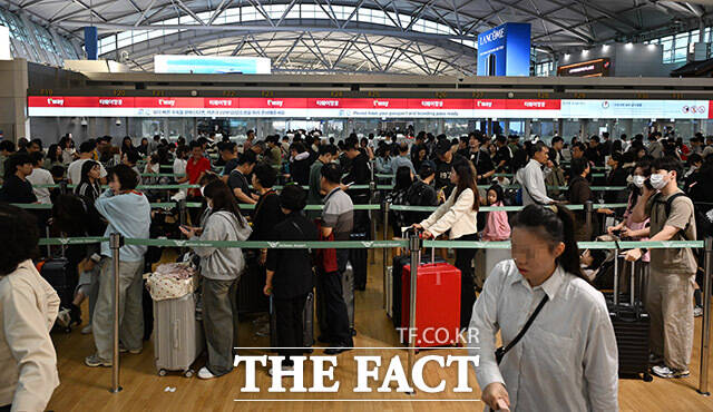 [더팩트ㅣ인천국제공항=남용희 기자] 민족 대명절 추석인 6일 오전 인천국제공항 제1여객터미널 출국장이 여행객들로 북적이고 있다.