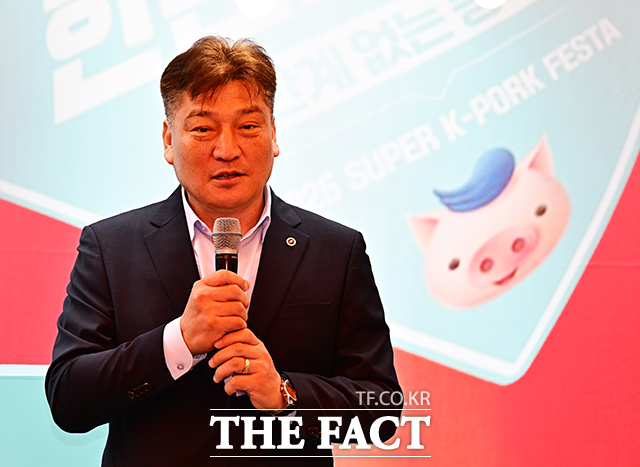 [더팩트ㅣ배정한 기자] 손세희 한돈자조금관리위원회 위원장이 11일 오전 서울 성동구 성수동 XYZ 서울에서 열린 ‘2025 SUPER 한돈 페스타 팝업스토어’ 개막식에 참석해 인사말을 하고 있다.