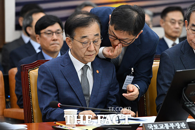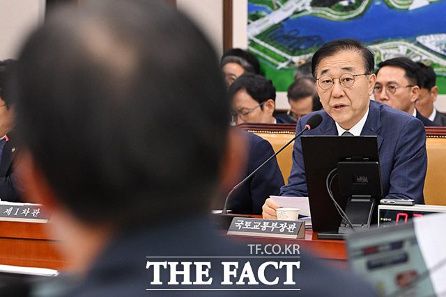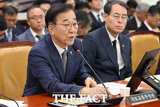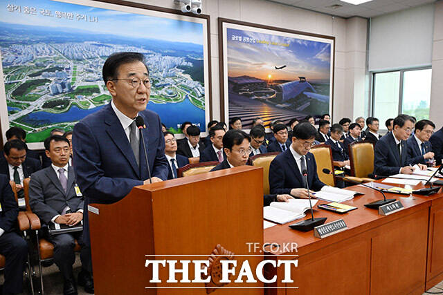 [더팩트ㅣ국회=남용희 기자] 김윤덕 국토교통부 장관이 13일 오전 서울 여의도 국회에서 열린 국토교통위원회 국정감사에서 업무보고를 하고 있다.