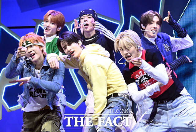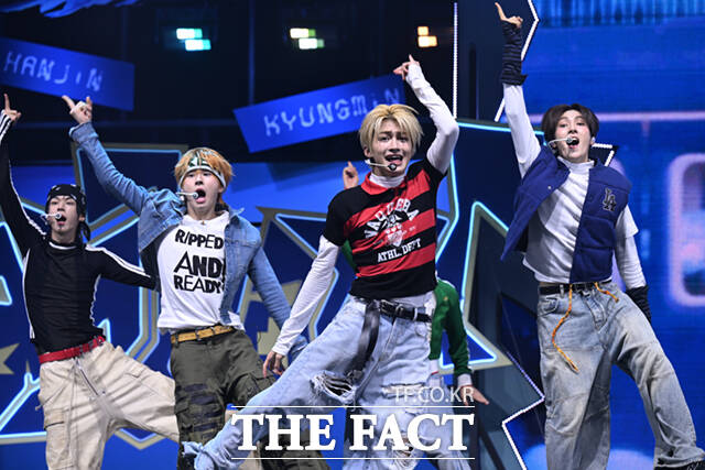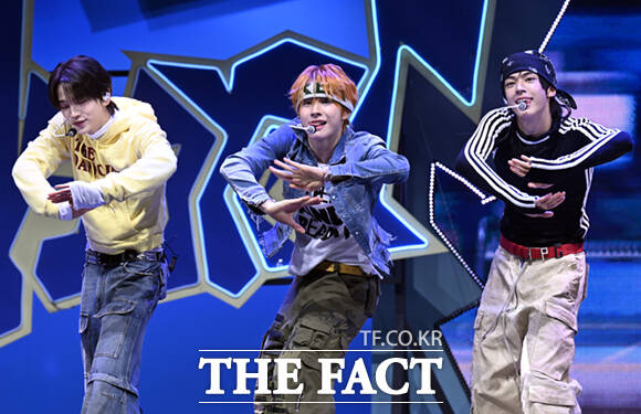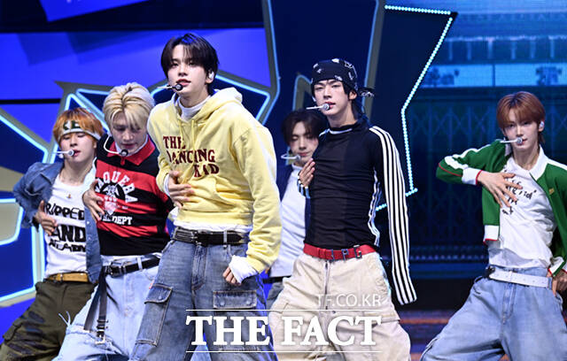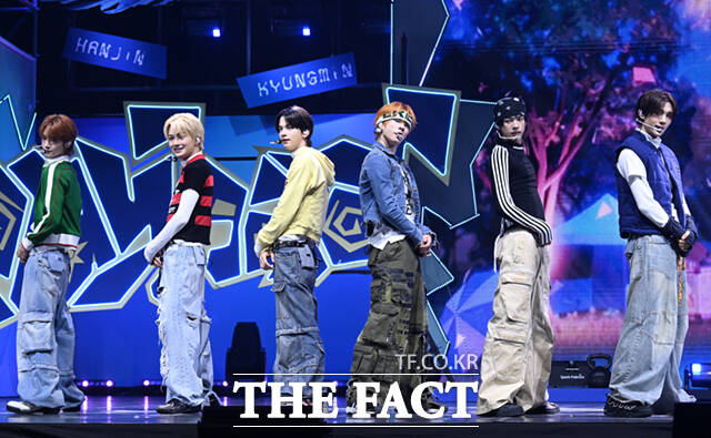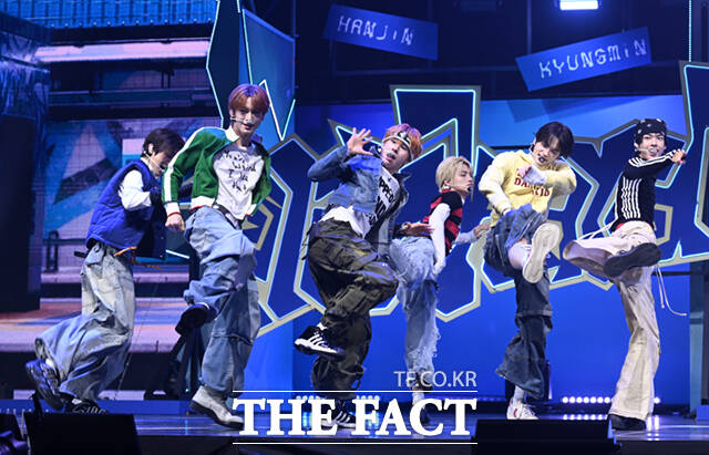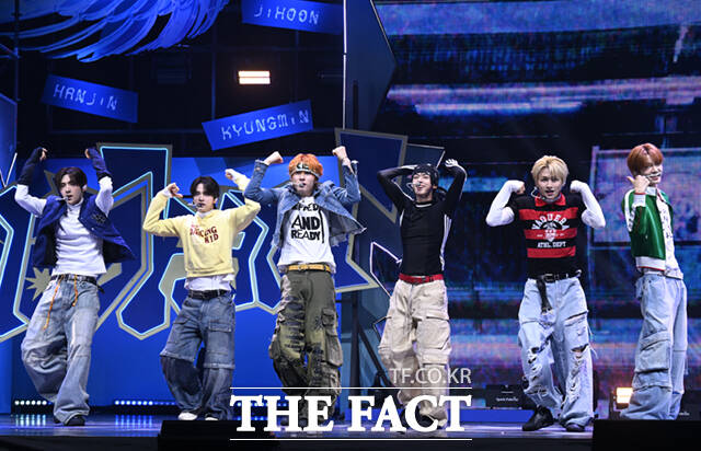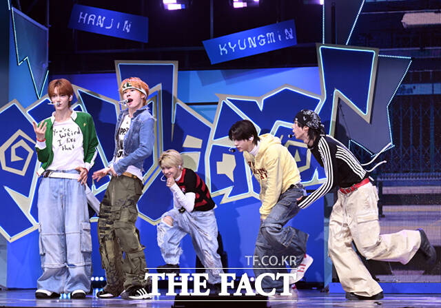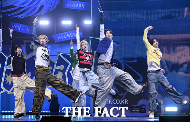 [더팩트ㅣ이새롬 기자] 그룹 TWS(투어스)가 13일 오후 서울 광진구 예스24 라이브홀에서 열린 미니4집 'play hard(플레이 하드)' 미디어 쇼케이스에서 타이틀곡 '오버드라이브' 무대를 선보이고 있다.