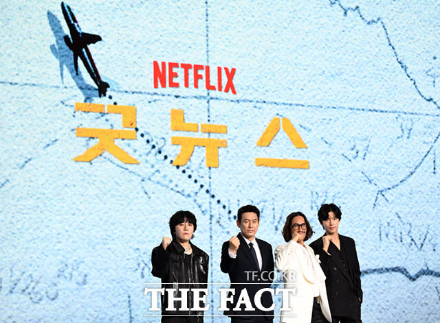 변성현 감독이 연출한 '굿뉴스는' 1970년대를 배경으로 납치된 여행기를 착륙시키기 위해 고군분투하는 사람들의 이야기를 그린다. 1979년 3월 31일 발생한 일본항공 351편 납치사건, 일명 '요도호 사건'을 바탕으로 제작된 작품이다.