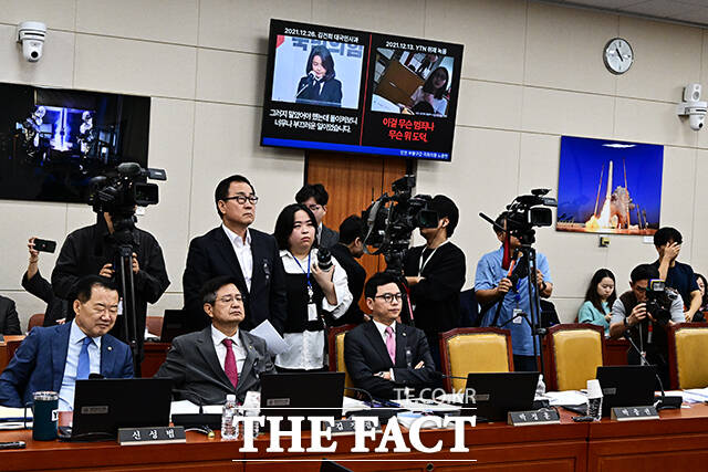 [더팩트ㅣ국회=배정한 기자] 노종면 더불어민주당 의원이 14일 오전 서울 여의도 국회 과학기술정보방송통신위원회에서 열린 방송미디어통신위원회 등에 대한 국정감사에 참석해 김건희 씨에 대한 녹취 공개를 하고 있다.