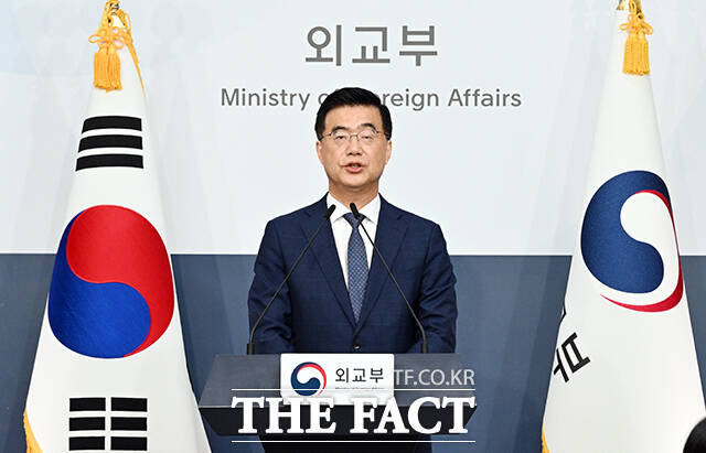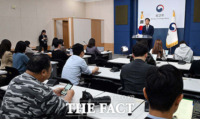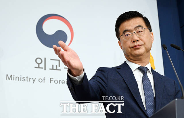 [더팩트ㅣ임영무 기자] 이재웅 외교부 대변인이 14일 오후 서울 종로구 외교부 청사에서 캄보디아 고문 살인사건과 관련해 브리핑을 하고 있다.