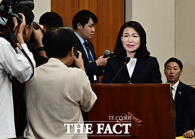 [더팩트ㅣ국회=배정한 기자] 이진숙 전 방송통신위원회 위원장이 14일 오후 서울 여의도 국회 과학기술정보방송통신위원회에서 열린 방송미디어통신위원회 등에 대한 국정감사에 참석해 질의에 답변을 하고 있다.