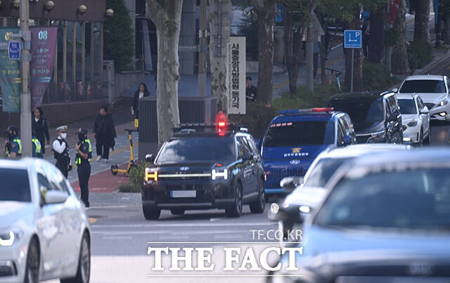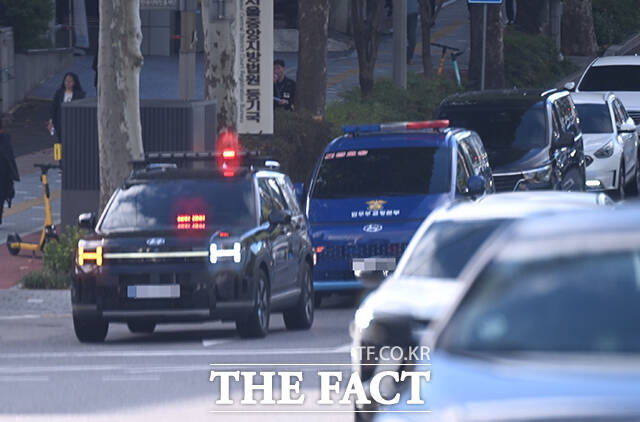 [더팩트ㅣ이새롬 기자] 15일 오전 윤석열 전 대통령을 태운 호송차량이 내란 특검 사무실이 마련된 서울 서초구 서울고등검찰청 청사로 이동하고 있다.