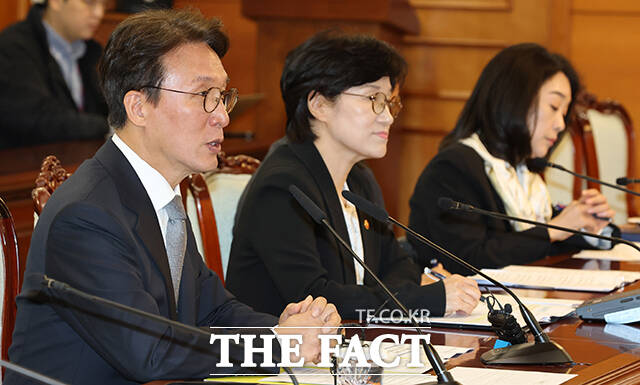 [더팩트ㅣ임영무 기자] 김민석 국무총리(왼쪽)가 15일 오전 서울 종로구 정부서울청사에서 열린 치안·안전 관계장관회의에 참석해 모두발언을 하고 있다.