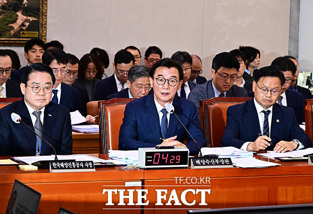 전재수 해양수산부 장관이 15일 오전 서울 여의도 국회 농림축산식품해양수산위원회에서 열린 해양수산부에 대한 국정감사에 출석해 질의에 답변을 하고 있다. /국회=배정한 기자