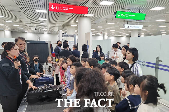 [더팩트ㅣ임영무 기자] 청주세관(세관장 박용주)은 15일 청주 청원구 청주국제공항을 찾은 충북도내 초등학교 어린이들을 대상으로 마약의 위험성을 알리고 단속 과정을 공개하는 체험학습을 실시했다.