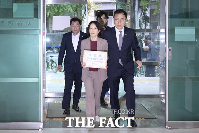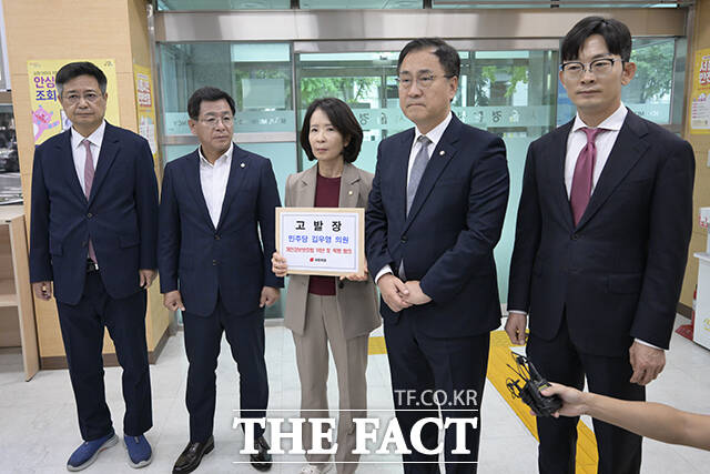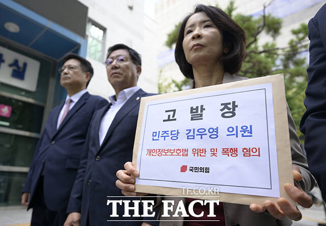 [더팩트ㅣ장윤석 기자] 국회 과학기술정보방송통신위원회(과방위) 최형두 국민의힘 간사를 비롯한 의원들이 15일 오후 서울 종로구 서울경찰청 앞에서 더불어민주당 김우영 의원을 개인정보보호법 위반 등으로 고발하기 앞서 발언하고 있다.