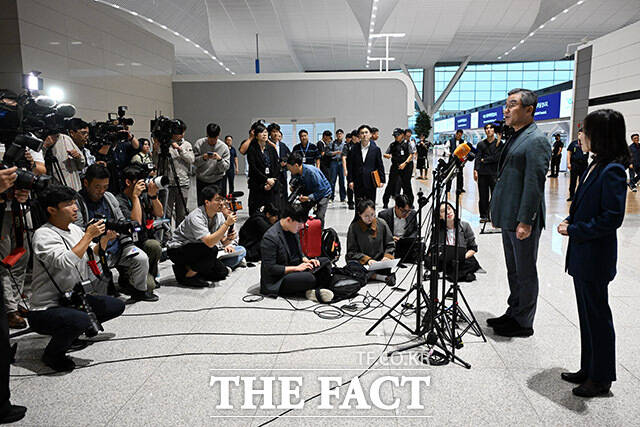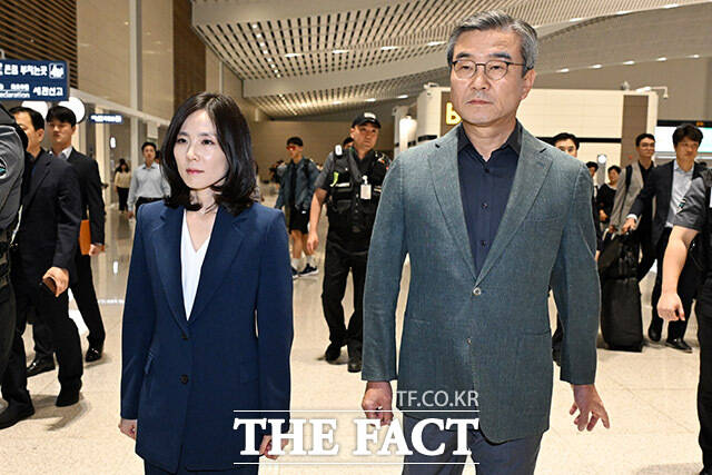 [더팩트ㅣ인천국제공항=남용희 기자] 정부합동대응팀 단장인 김진아 외교부 2차관(왼쪽)과 박성주 경찰청 국가수사본부장이 15일 오후 인천국제공항을 통해 캄보디아로 출국하고 있다.