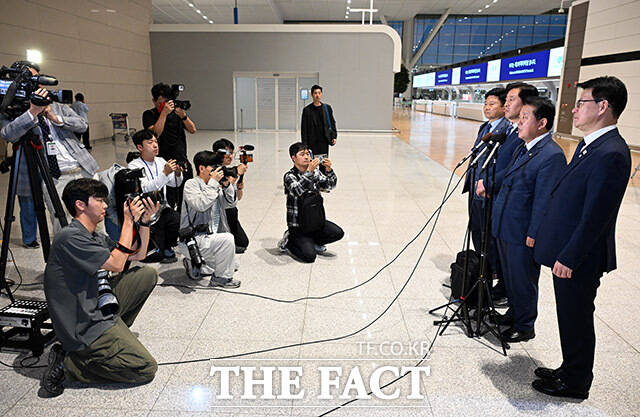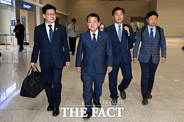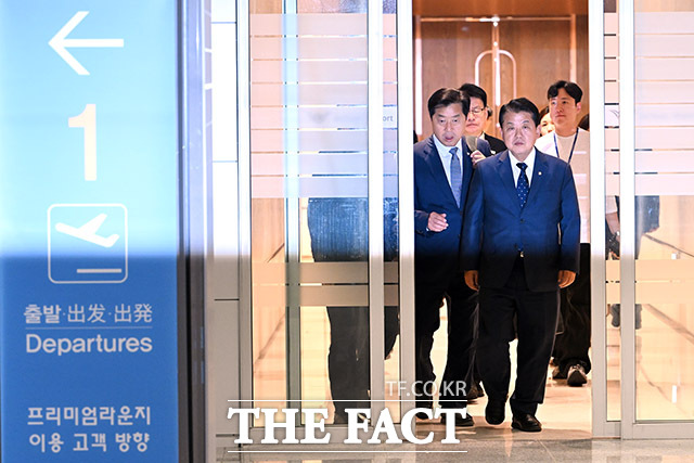 [더팩트ㅣ인천국제공항=남용희 기자] 김병주 더불어민주당 최고위원을 단장으로 한 재외국민안전대책단이 15일 오후 인천국제공항을 통해 캄보디아로 출국하고 있다.
